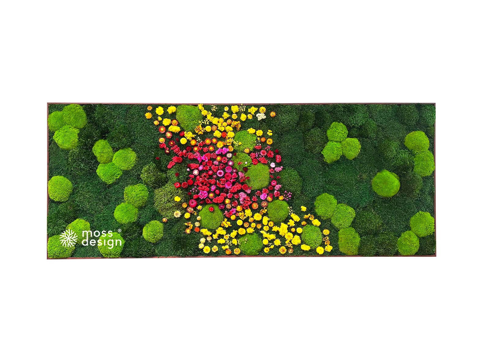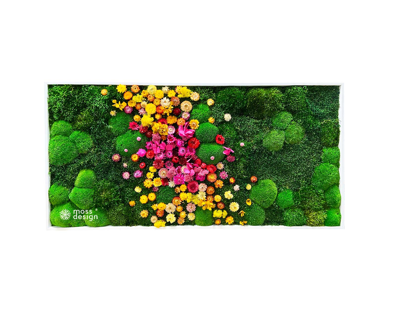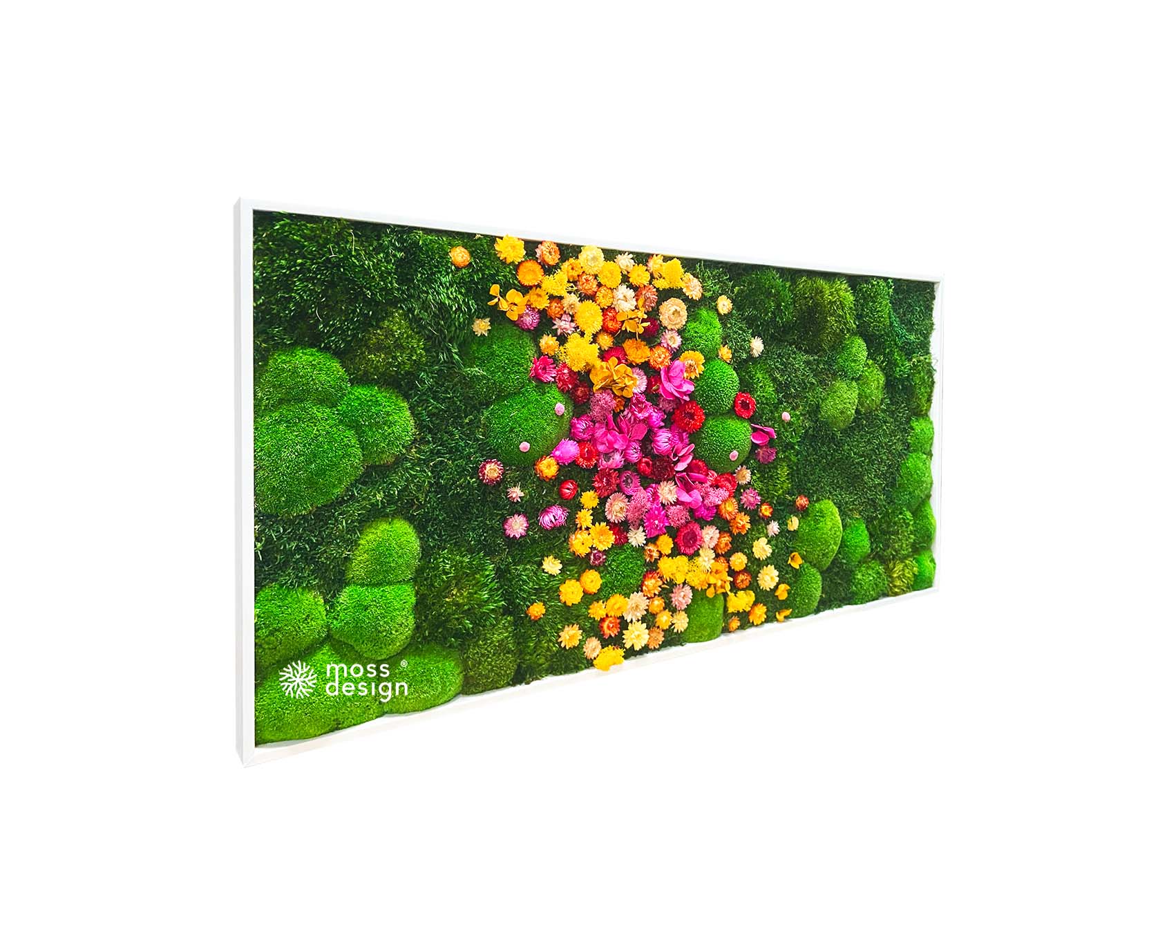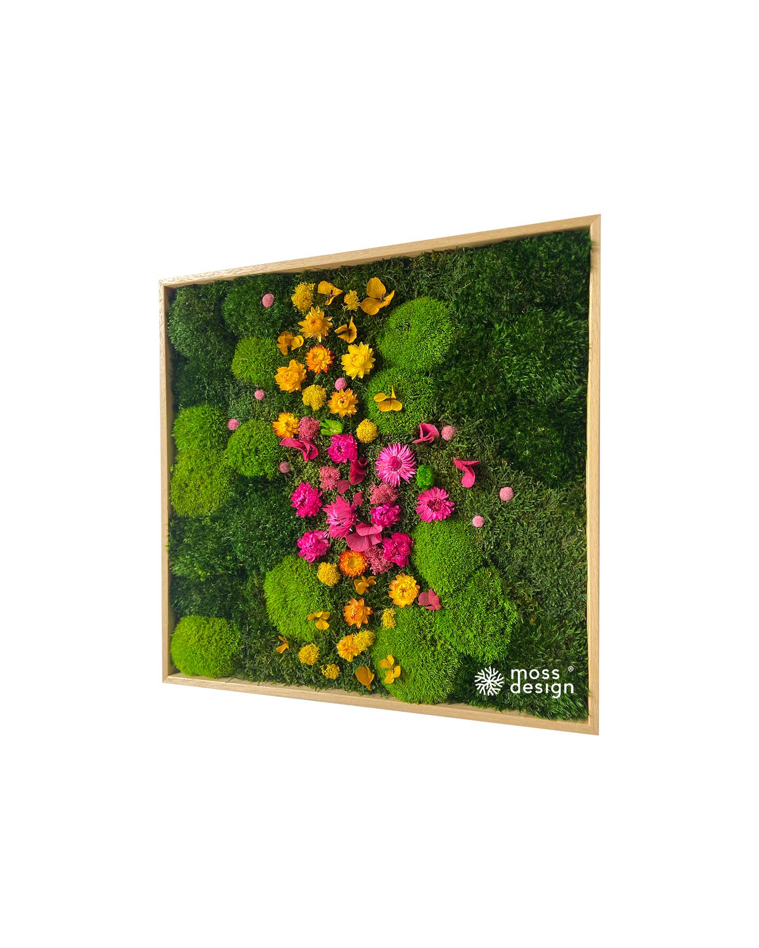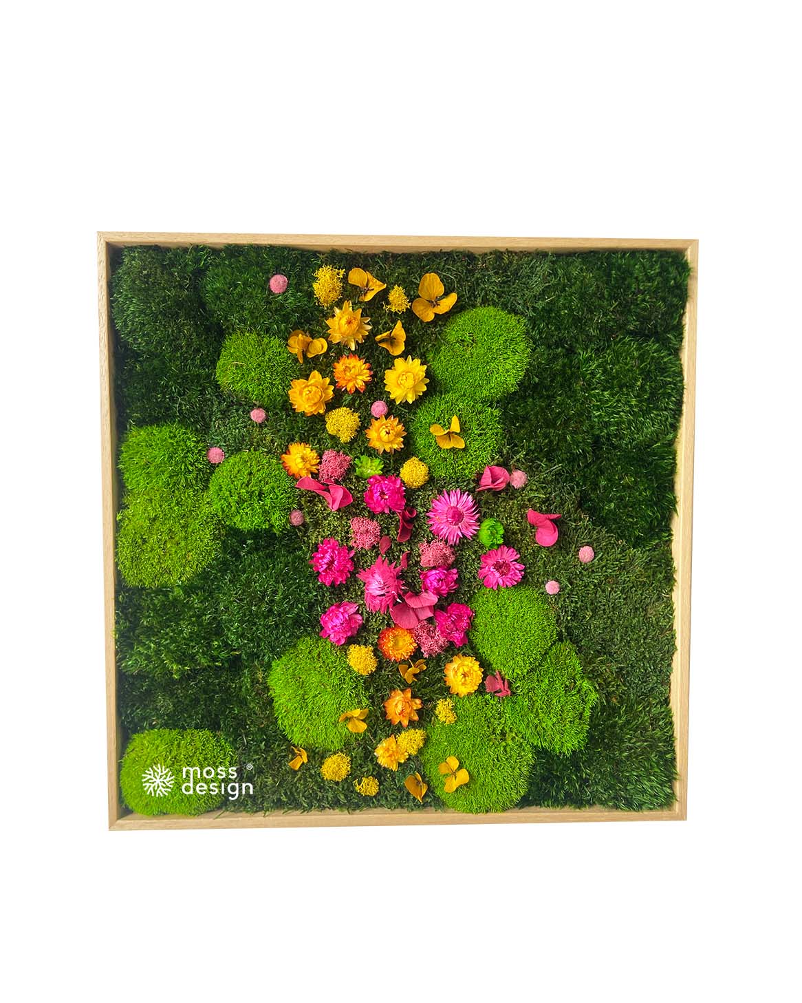 Náš hranatý mechově květinový obraz FLORAL je originálním doplňkem do každého interiéru. Díky zajímavé barevné kompozici s kombinací sušených rostlin a stabilizovaných mechů je naprosto nepřehlédnutelný.