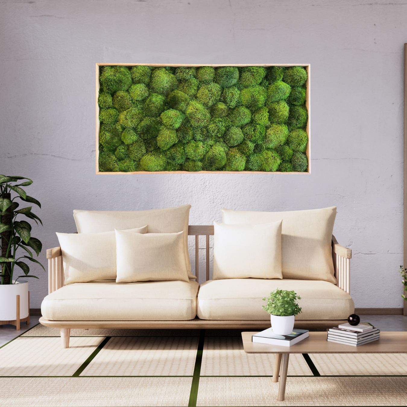 Mechový obraz – sibiřský mech si Vás získá svým přirozeným vzhledem, 3D efektem a neopakovatelnou strukturou. V naší nabídce si můžete vybrat správný rozměr a barvu rámu, která bude dokonale ladit k Vašemu nábytku.